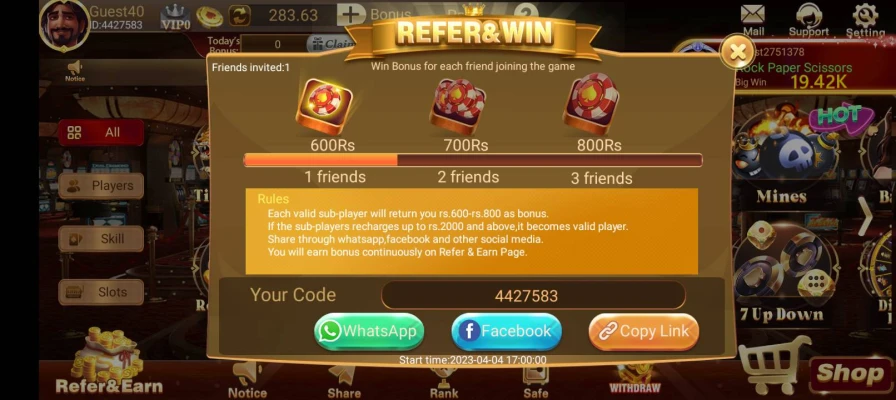 Besides Ludo, the app offers mini-games like Dragon vs Tiger, Roulette, and Mines. This variety makes the platform more entertaining and keeps players engaged for longer sessions.